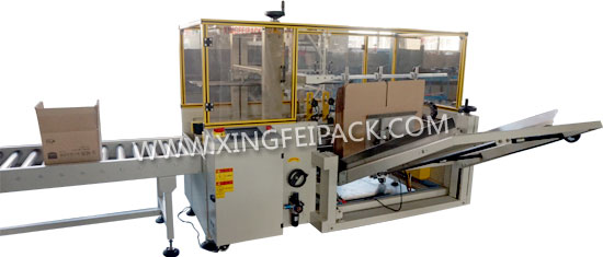 本機將疊成紙板的箱子自動(dòng)打開(kāi),箱子底部按一定程序折合,并用膠帶密封,可單獨使用,也可與裝箱機連線(xiàn)使用。廣泛應用于食品,化工,日用品等行業(yè)。