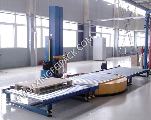 本機用于將伸縮膜纏繞于堆垛在托盤(pán)上的產(chǎn)品,防止產(chǎn)品在運輸過(guò)程中散落,可防水,防塵,便于運輸和儲存。應用于食品,飲料,化工,五金等行業(yè)。